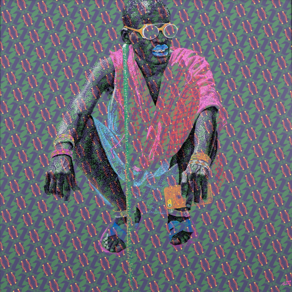 Archive du Bonheur brings together colorful and luminous portraits of Evans Mbugua’s family, friends, and other acquaintances. Through these familiar faces, the artist creates an archive in which he celebrates joy and seeks to capture the emotions born from everyday encounters. A conversation, an exchanged glance or a shared presence thus become touchstones, preserving the memory of simple yet deeply meaningful moments.