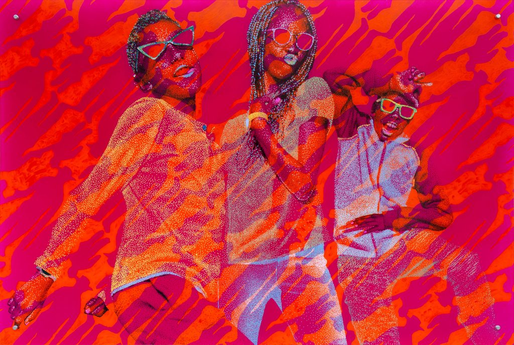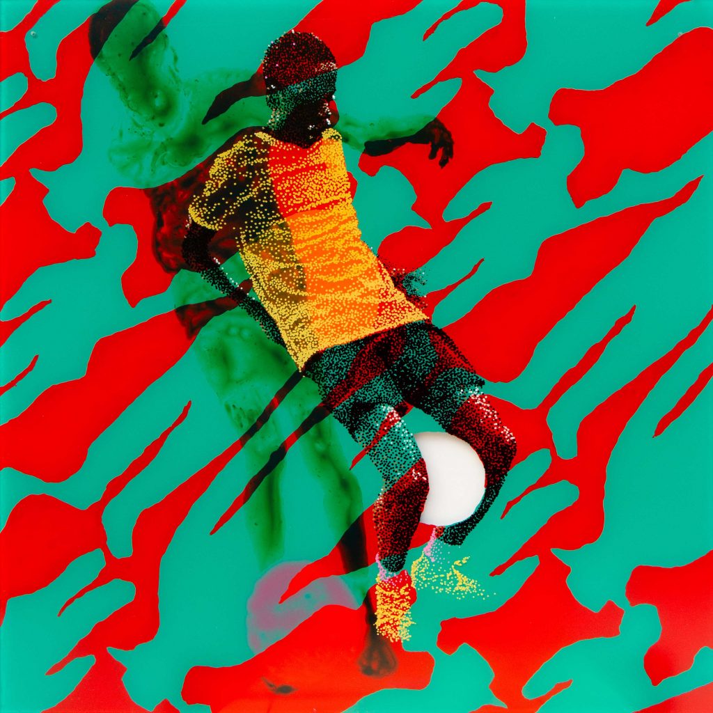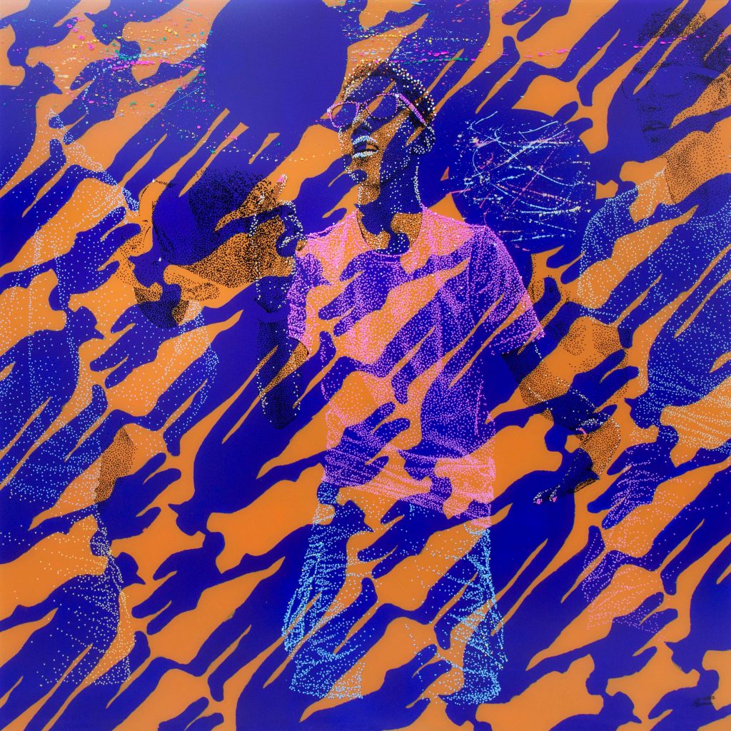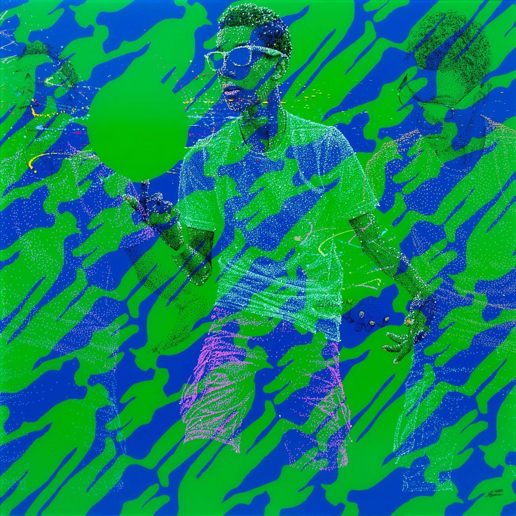 Mbugua’s long-standing series Back to the Future (2018-2024), explores the “age of life”, childhood and child-rearing practices, youth and adolescence. The series is inspired by the artist’s kinship with his niece and nephews, whose contemporary life cycles mirrors the artist’s own upbringing in Nairobi.