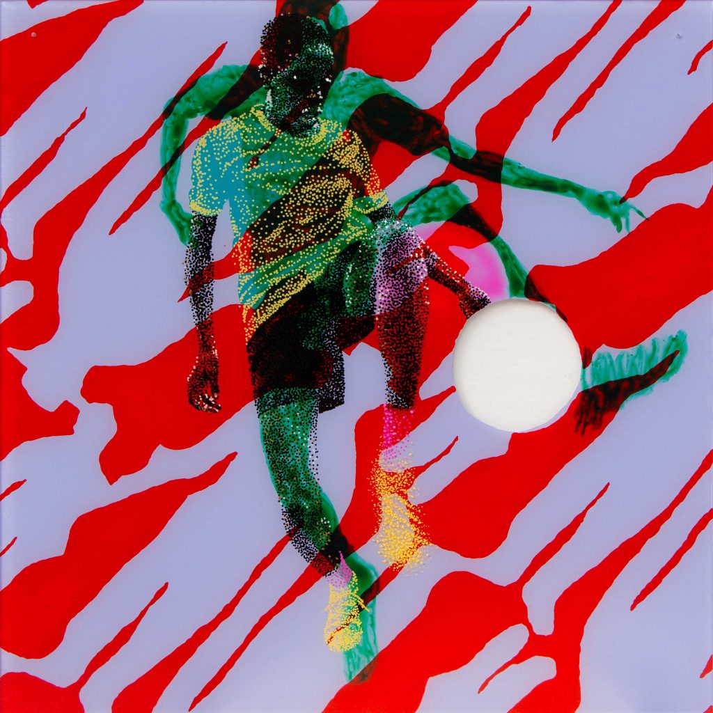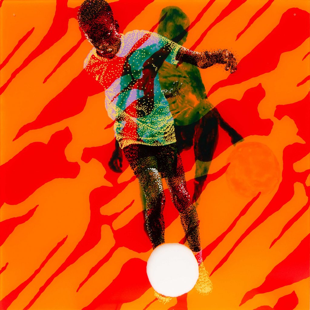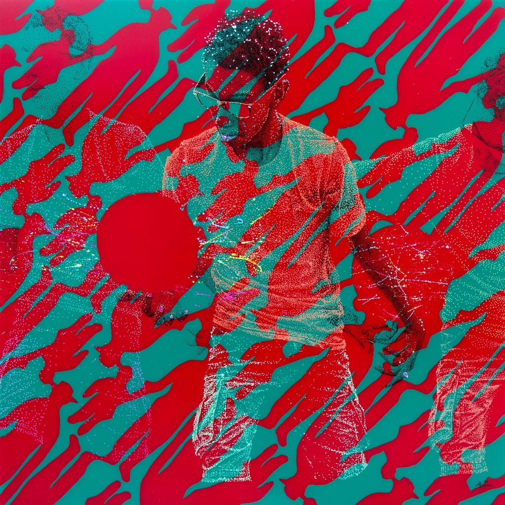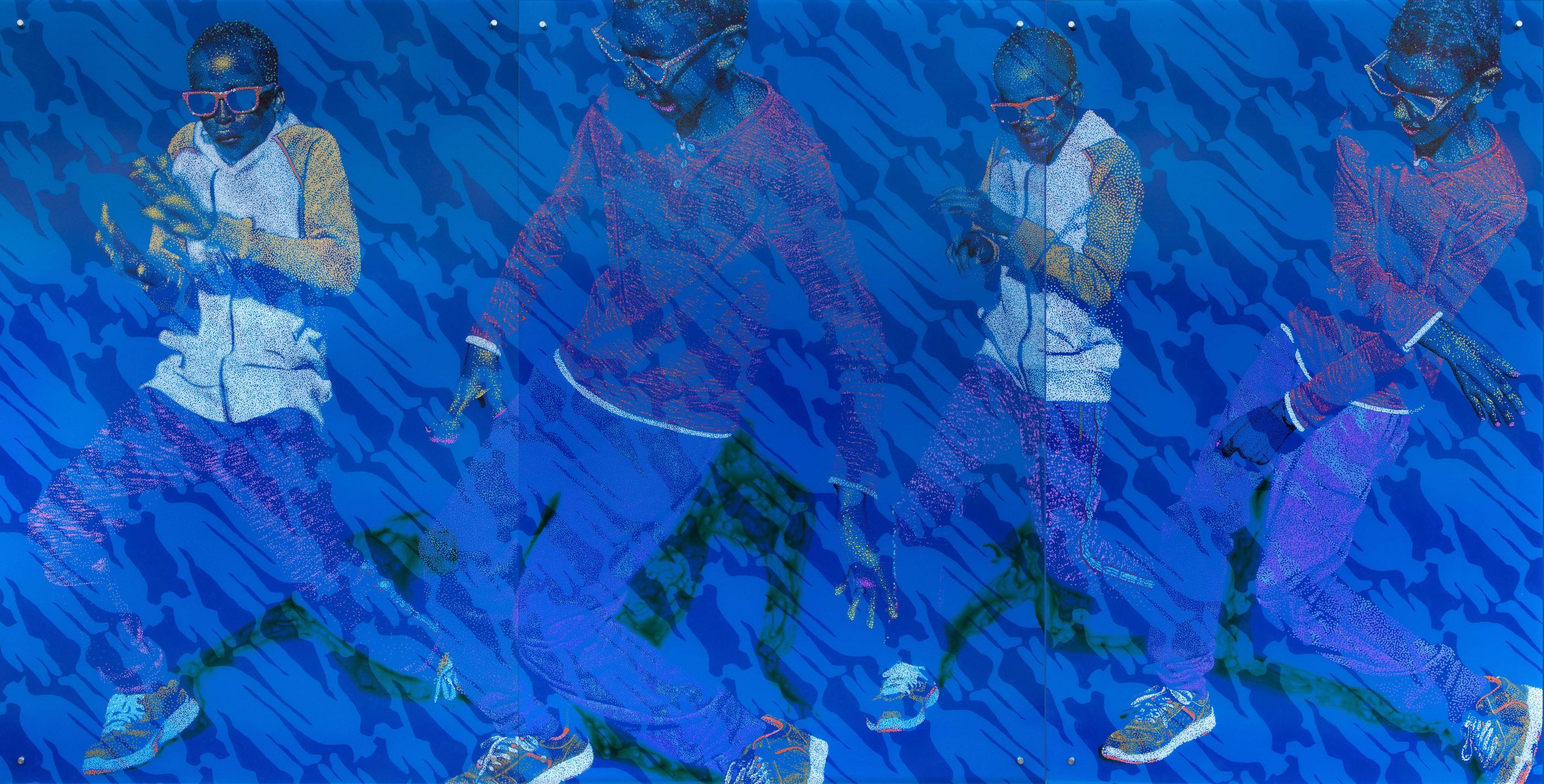Mbugua’s long-standing series Back to the Future (2018-2024), explores the “age of life”, childhood and child-rearing practices, youth and adolescence. The series is inspired by the artist’s kinship with his niece and nephews, whose contemporary life cycles mirrors the artist’s own upbringing in Nairobi.