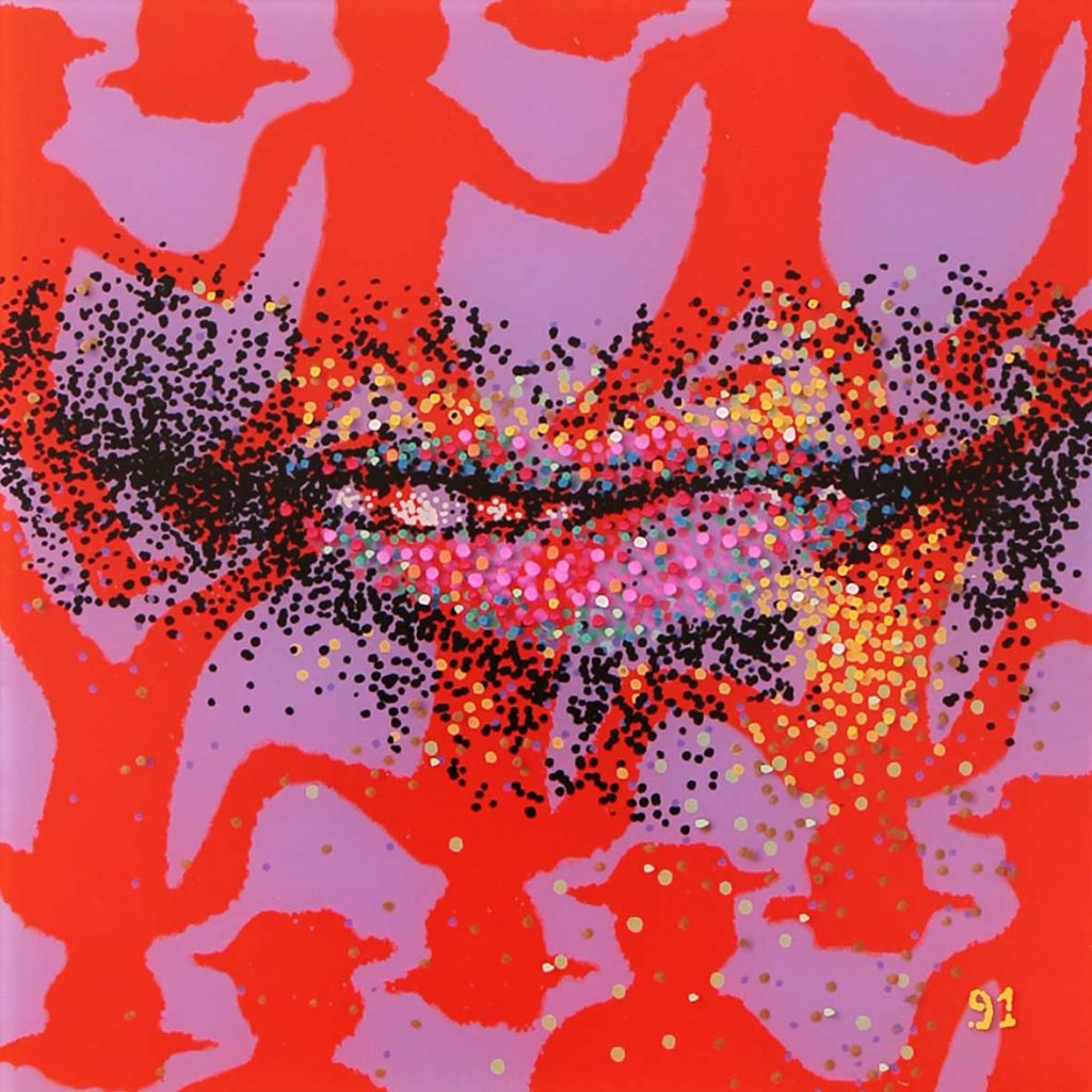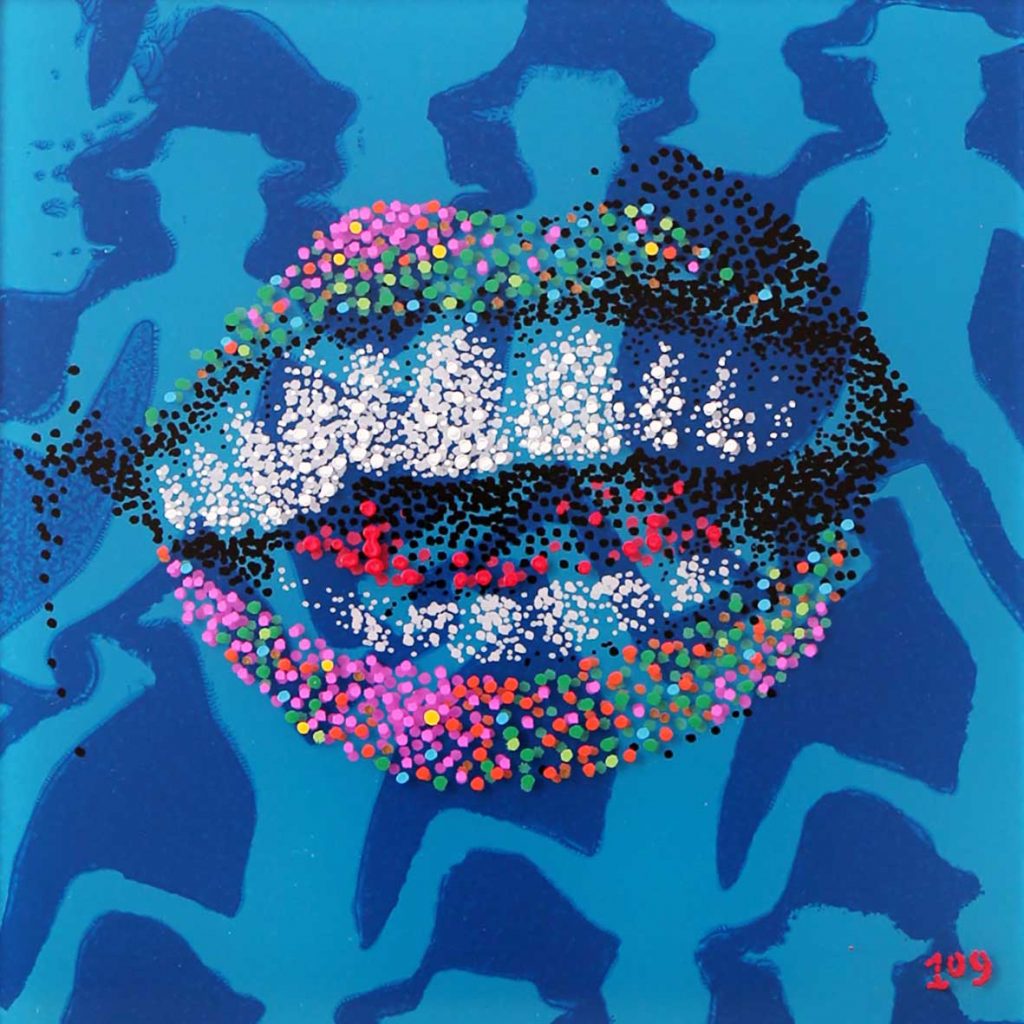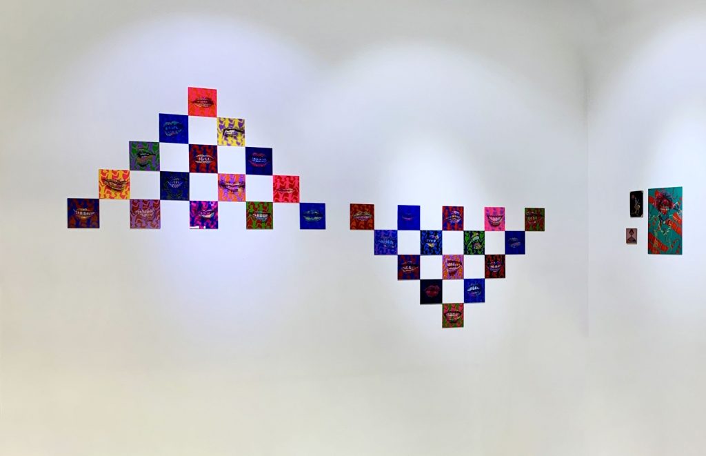The Dialogue series presents a constellation of mouths — a multitude of smiles taken from portraits created since 2015. Each work materializes the words that pass from one mouth to another, evoking possible dialogues where each person calls out, responds, and connects. Evans explores the dynamics of identity through words and languages. These everyday conversations, when strung together, tell a living story — History itself.